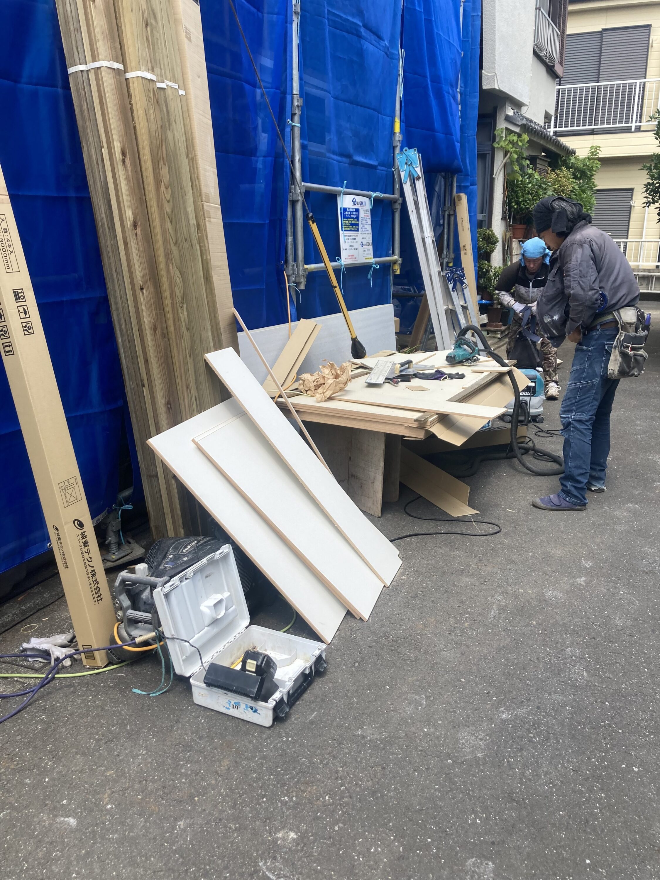 500軒天ボード加工中