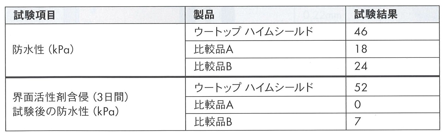 耐水試験結果表
