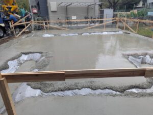 今回も外周部のみ、耐圧盤と立上りのコンクリートを一体打ちします。
