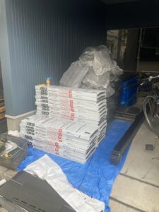 ちなみに、この後すぐに産廃業者の車が来て、シングル屋根および役物等を回収しています。