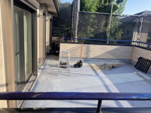 ちょっと見にくいかもしれませんが、奥の方で目地周りのマスキングを行っています。