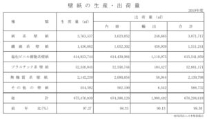 2019年度の壁紙の生産・出荷量を挙げてみました。