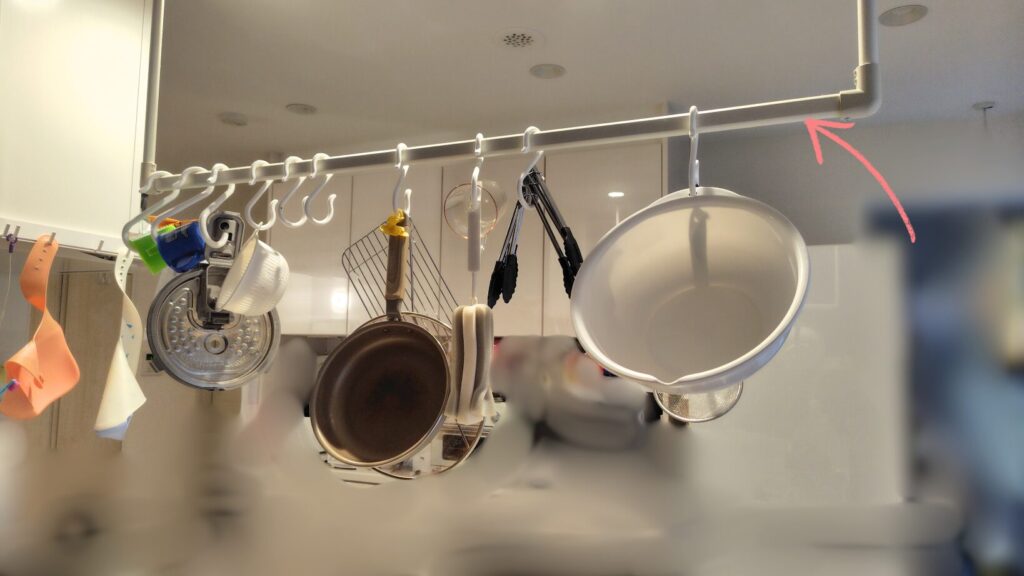 シンクの前にS字フックを付けられないか色々調べていたのですか、キッチンの上に吊り戸がある場合に