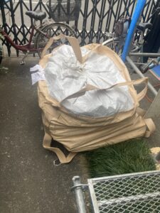 アスベスト含有建材の為、フレコンバックに入った状態で運搬しないとダメなんです。