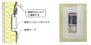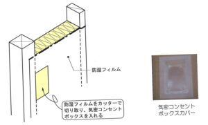 この時、専用の気密コンセントボックスカバーを使用すると、防湿性・気密性を損ないません。