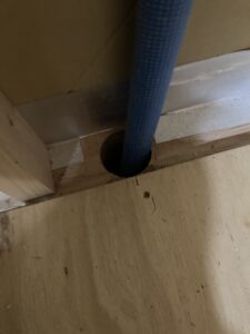 床下からの給水管が床断熱&床下地板に見事な穴を明けていました。