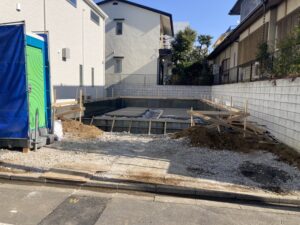 捨てコンを打設しているので、墨付けも容易に行えます。