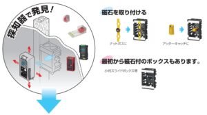 でも最近は、ボックスの真ん中に赤や黄色い磁石のついた帯を取付けるようになりました。