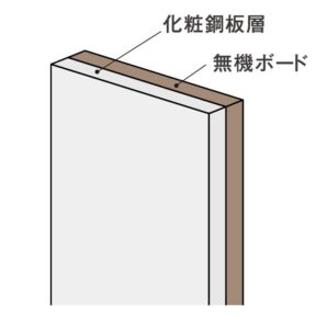 マグボードはイラストのように、無機ボードの表面に化粧鋼板を貼ったパネルです。