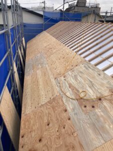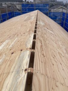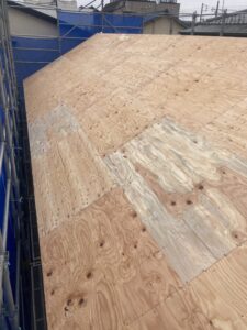 朝から野地合板の施工を行っています。