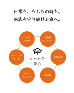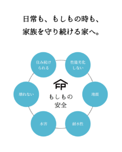 「『日常も、もしもの時も、家族を守り続けることの出来る家』を表したロゴマークなんですよ!」と私。