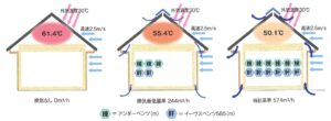 ちなみに小屋裏換気の目的は、夏季の小屋裏温度の低減です。