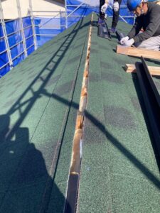 最後に棟包を被せて、完成です。