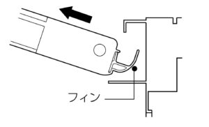 扉を開きながらフィンが引っ掛からないように外します。