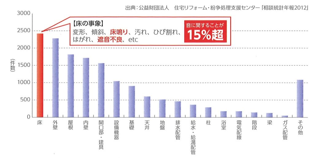 住宅リフォーム・紛争処理支援センターの統計によれば、床に関するクレームが一番多いそうです。