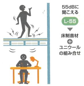 そこで弊社では、さらに階下の天井裏に吸音材を敷き込む事でLL-55を実現している訳です。