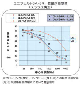軽量衝撃音のユニフェルト効果を示したグラフを挙げています。