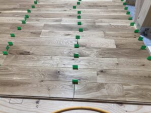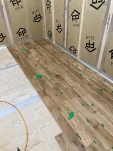 無垢フローリング施工中