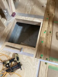 1階床に断熱材を充填し、ここが断熱・気密ラインとなります。