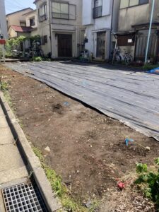 随分前に解体工事は完了しているので、防草シートを敷いて着工を待っていたんです。