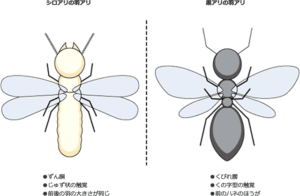 シロアリのハネアリとクロアリのハネアリの違いを挙げてみました。
