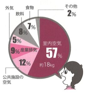 室内空気が全体の57%を占め、その量は約18kgになるそうです。