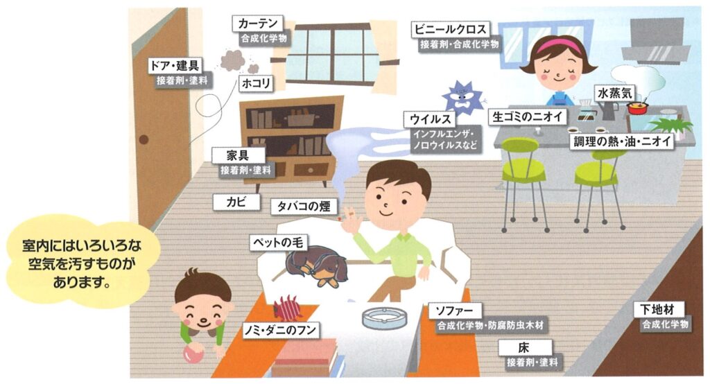 そもそも2003年に24時間換気が義務付けられたのも、換気によりこうした悪い物質を建物外に排出するのが目的だったんです。